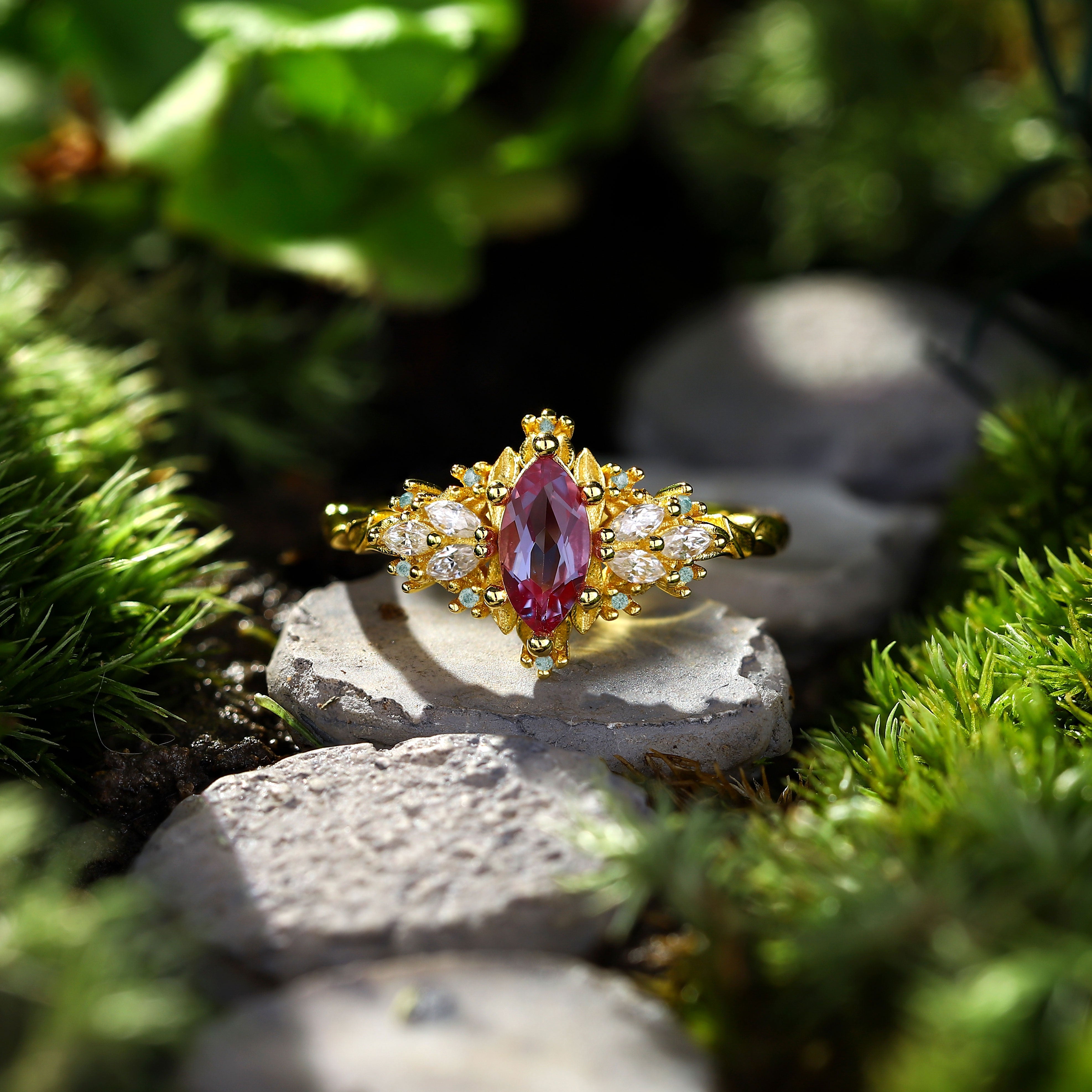 Unique Briar Moon Marquise Lab Alexandrite Ring
