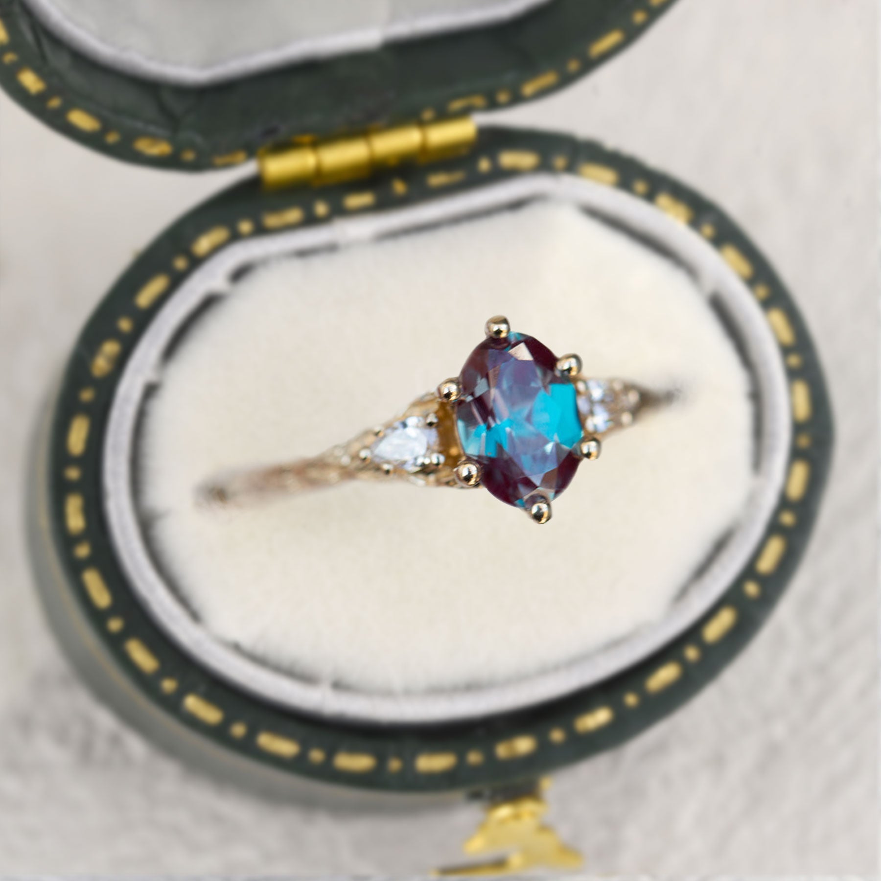 Unique Aspen Oval Lab Alexandrite Ring
