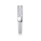 Featuring Baguette moissanite and two radiant diamond rows, this ring exudes sophistication. Ideal for work, parties, or gifting. Pair with silver accessories and neutral tones for a classic, polished look. Perfect for anniversaries or special celebrations.