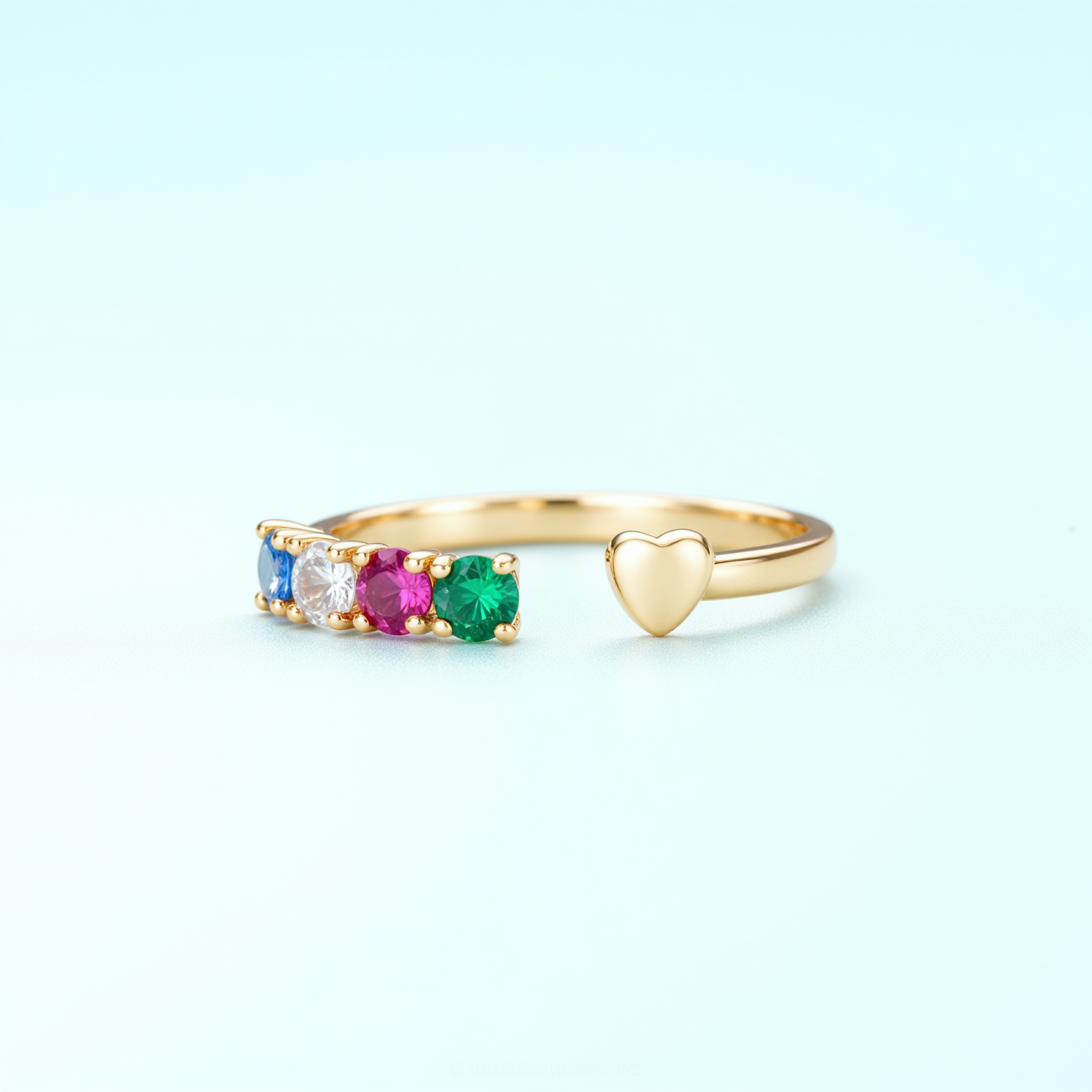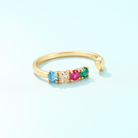 A vibrant blend of colorful gemstones adorns this adjustable open gold ring, offering playful sophistication. Representing joy and creativity, it’s ideal for casual outings, brunches, or gifting to close friends. Matches beautifully with pastel outfits and a dainty gold necklace for a fresh, chic style.