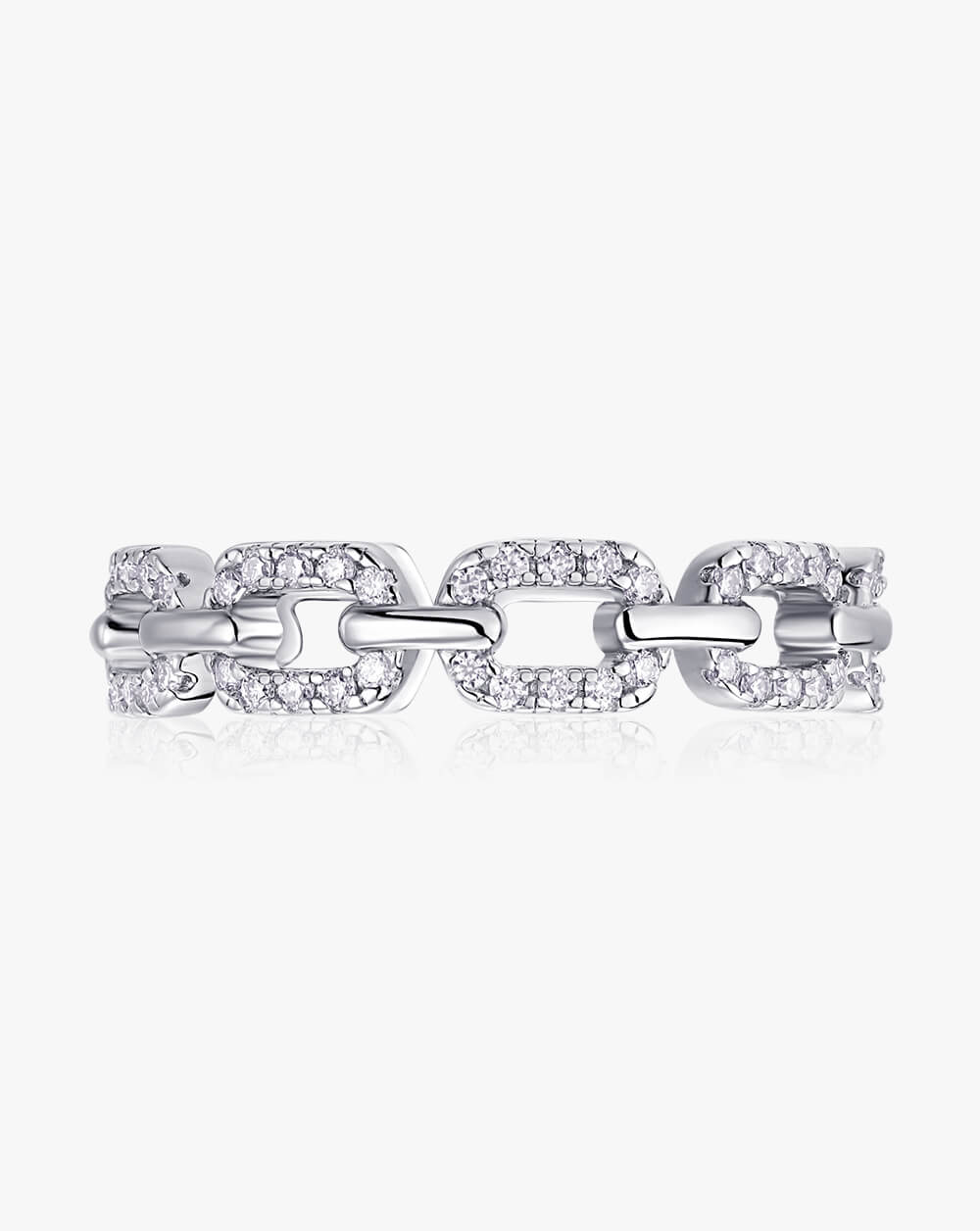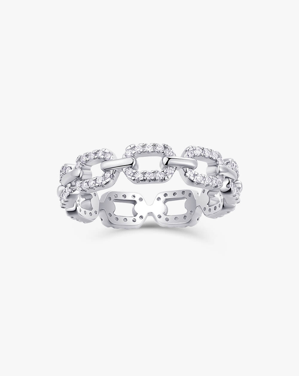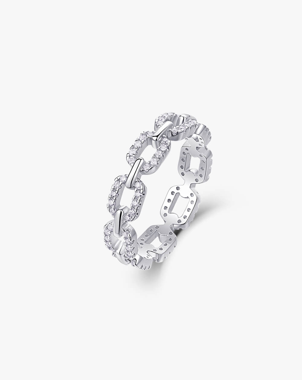 Dazzling Chain-Link Eternity Silver Moissanite Ring