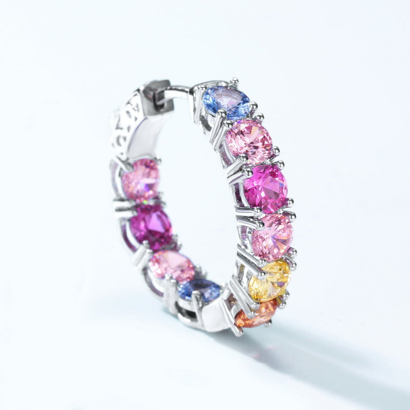 Eye-catching multicolor zircon hoops bring vibrant elegance to parties, daily wear, or gifting. Pair with neutral outfits, soft pastels, and delicate silver bracelets for effortless charm. A perfect blend of style and versatility!