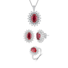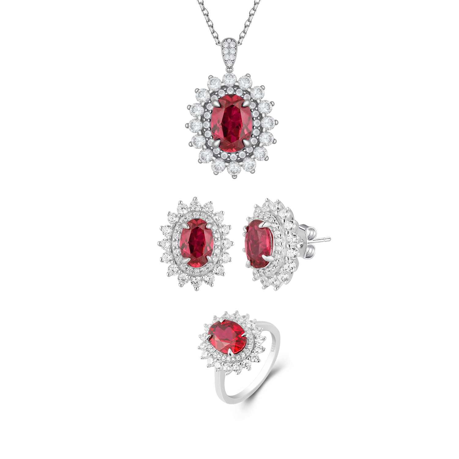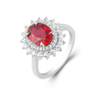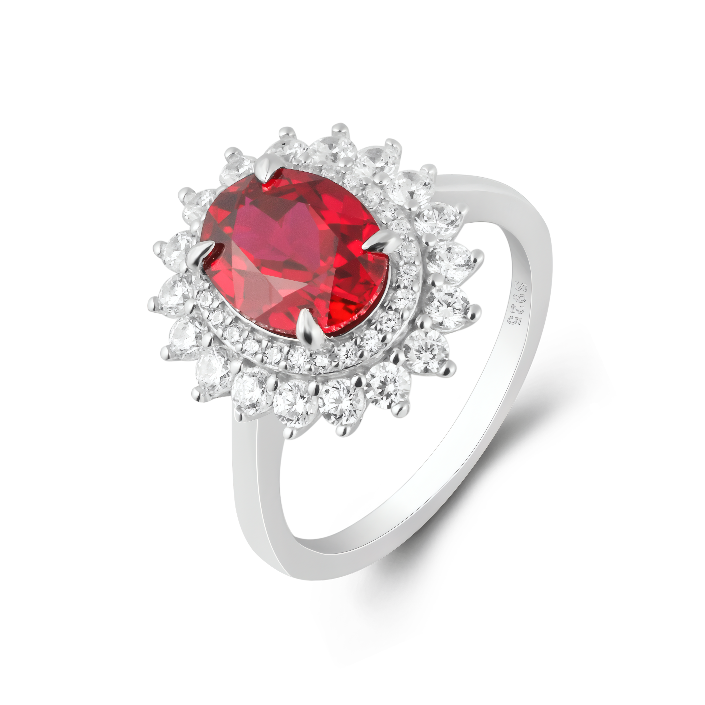 This exquisite ruby ring features an oval gemstone halo design, symbolizing love and passion. Perfect for parties, daily wear, or work. Ideal as a romantic gift, festive present, or a token of friendship. Pairs beautifully with a blue or white outfit and silver-toned accessories.