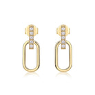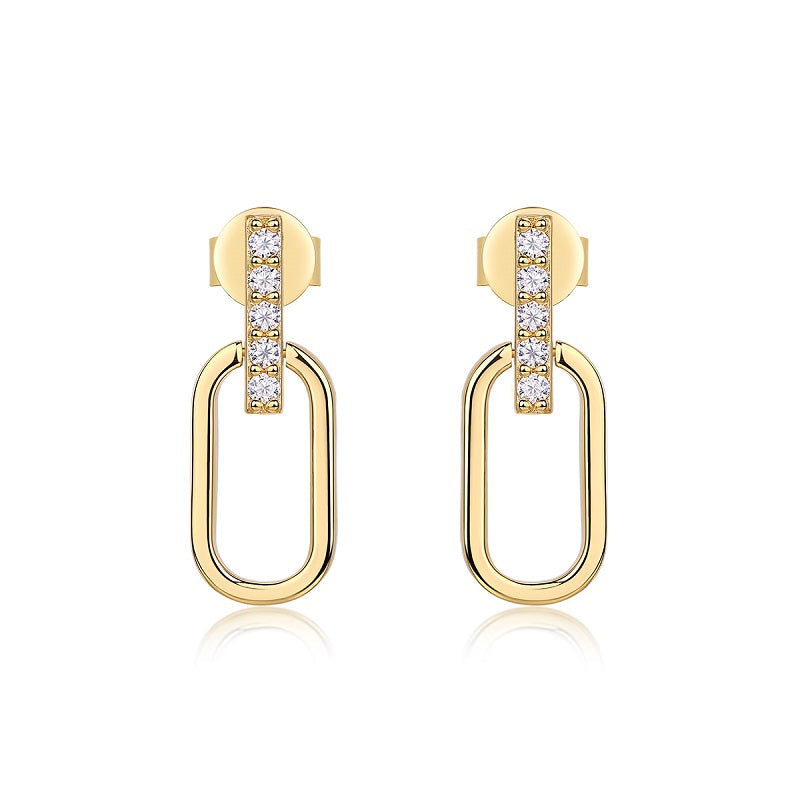 These gold paperclip-shaped earrings, adorned with fine diamonds, blend modern minimalism with timeless elegance. Perfect for parties, office attire, or casual outings. A thoughtful gift for loved ones. Pair with a cream blouse and gold bangles for a polished, sophisticated style.