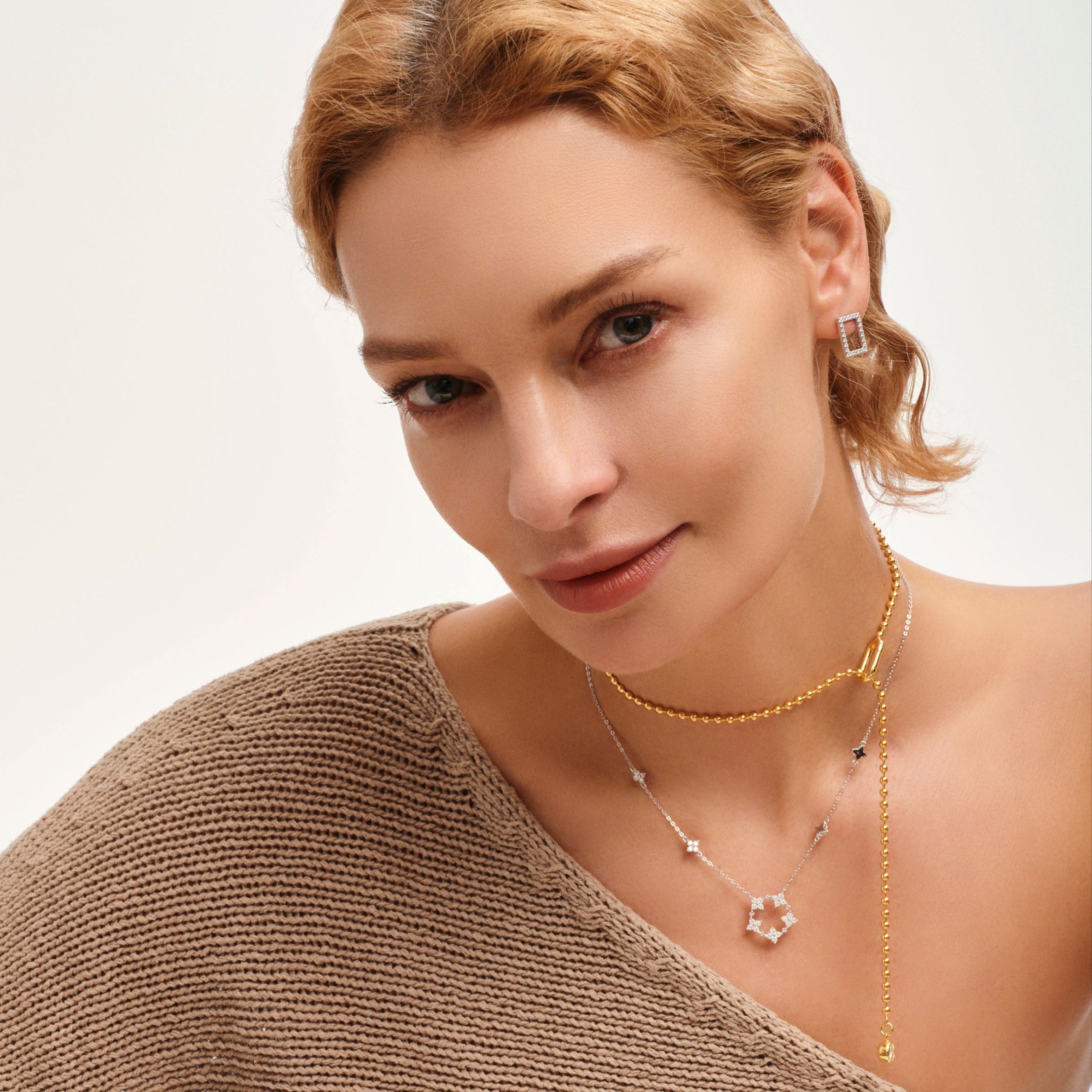 These dazzling square-shaped silver earrings, fully adorned with shimmering stones, symbolize elegance and balance. Perfect for work, parties, or casual outings. An ideal gift for anniversaries or friends. Pair with a tailored black suit, silver pendant necklace, and crystal bracelets for timeless sophistication.