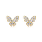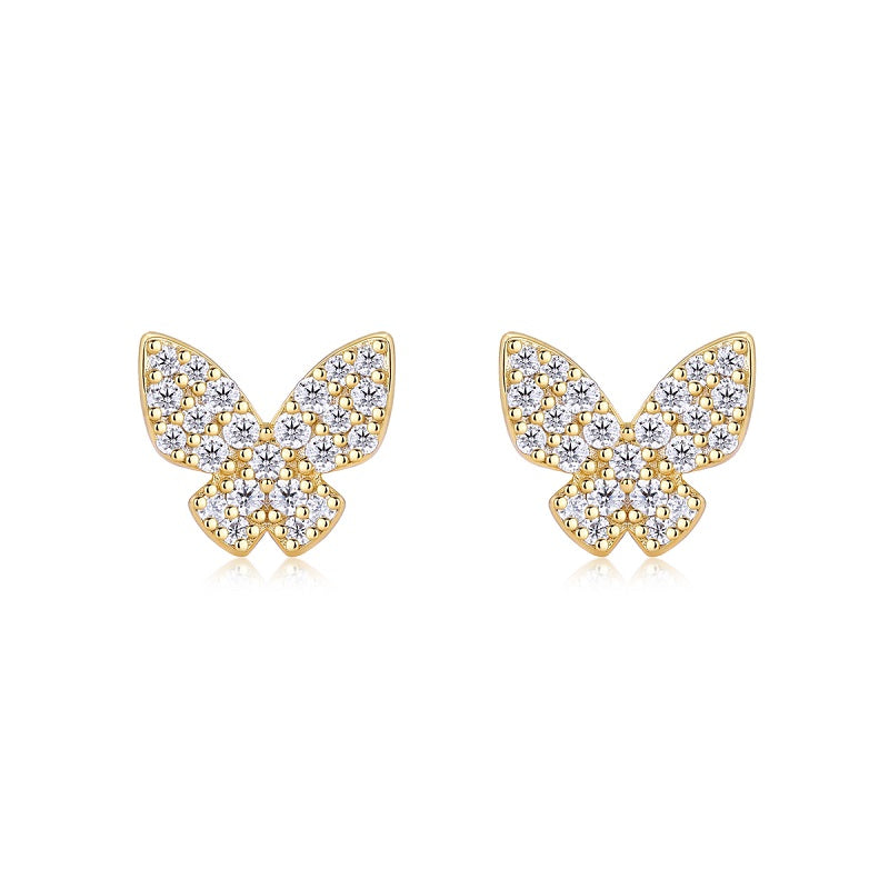 These dazzling butterfly-shaped gold stud earrings, covered in shimmering stones, symbolize freedom and elegance. Perfect for weddings, parties, or casual chic. A thoughtful gift for anniversaries or best friends. Pair with a pastel dress, layered gold necklaces, and crystal bracelets for a trendy, radiant look.