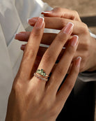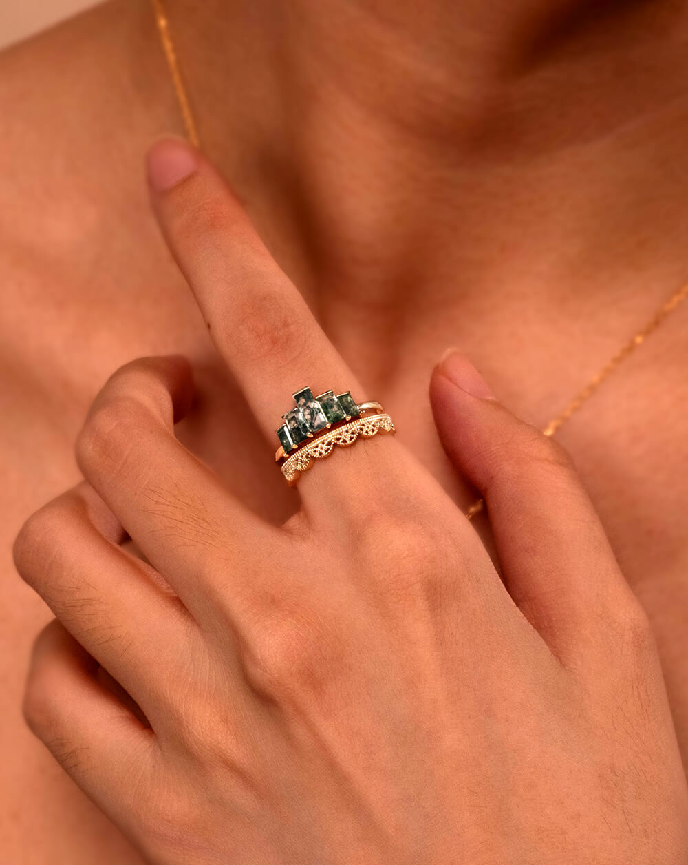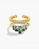 Gold Crown Stack Moss Agate Engagement Ring Set