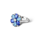 Luxury Natural Blue Topaz Floral Statement Ring In Silver