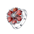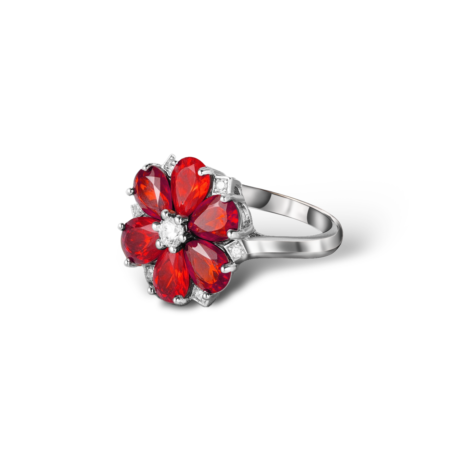 This elegant six-petal garnet flower ring symbolizes love and vitality. Perfect for parties, casual outings, or office wear. Ideal as a birthday gift, anniversary surprise, or friendship token. Pair with a deep red dress, gold earrings, and a sleek bracelet for a bold, refined look.