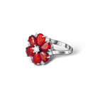 Luxury Natural Garnet Blossom Floral Statement Ring In Silver