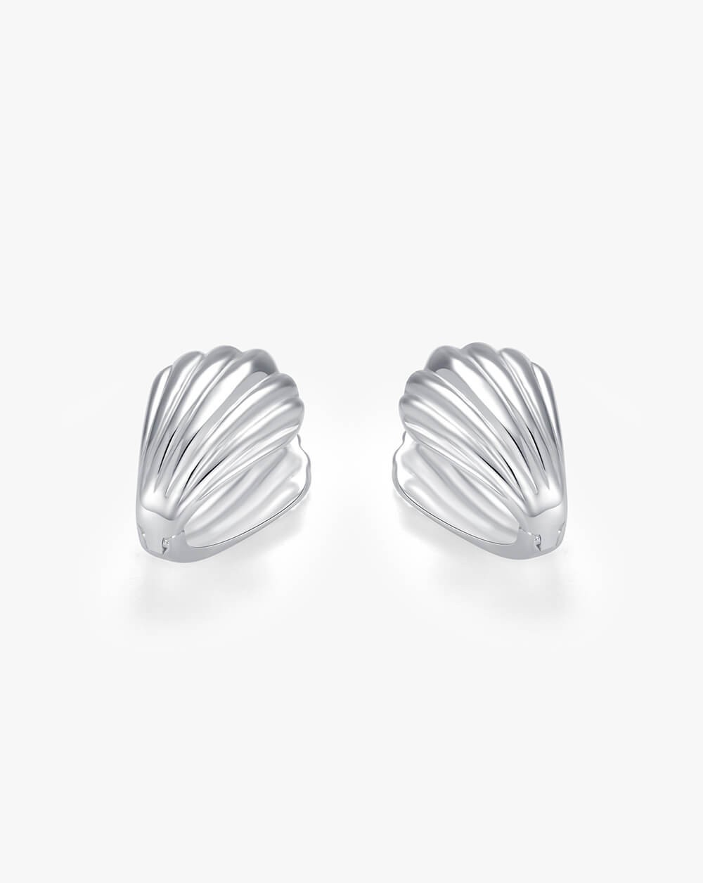 Minimalist Frosted Shell Silver Huggie Hoop Earrings