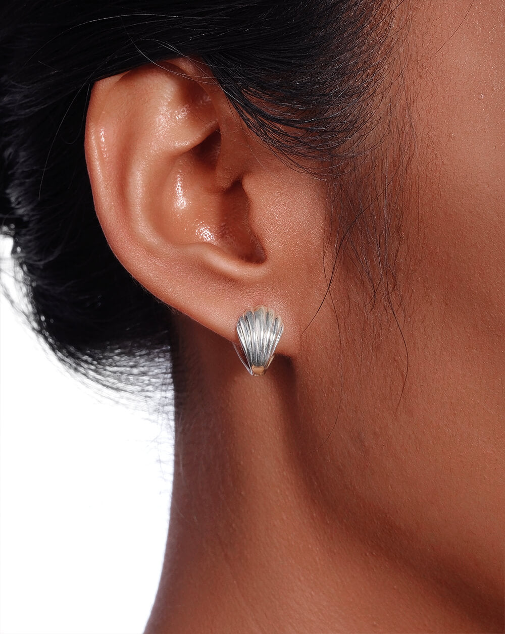 Hand-sculpted irregular oval shells in frosted finish from 925 silver. Their organic asymmetry catches light like sun-bleached sea glass – elevating linen shifts at beach clubs or silk blouses in urban gardens. Feather-light lever backs contour comfortably for 24/7 wear, tarnish-resistant to salt spray and city rain. Designed for stacking with minimal hoops or solo whisper-quiet elegance.