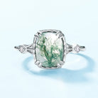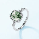 Minimalist Geometric Moss Agate Solitaire Ring in Sterling Silver