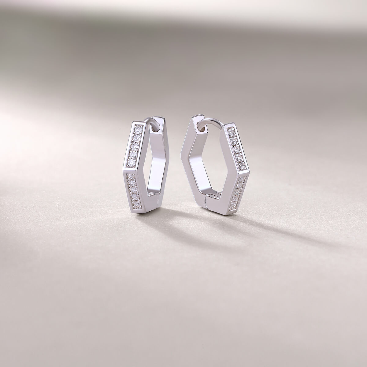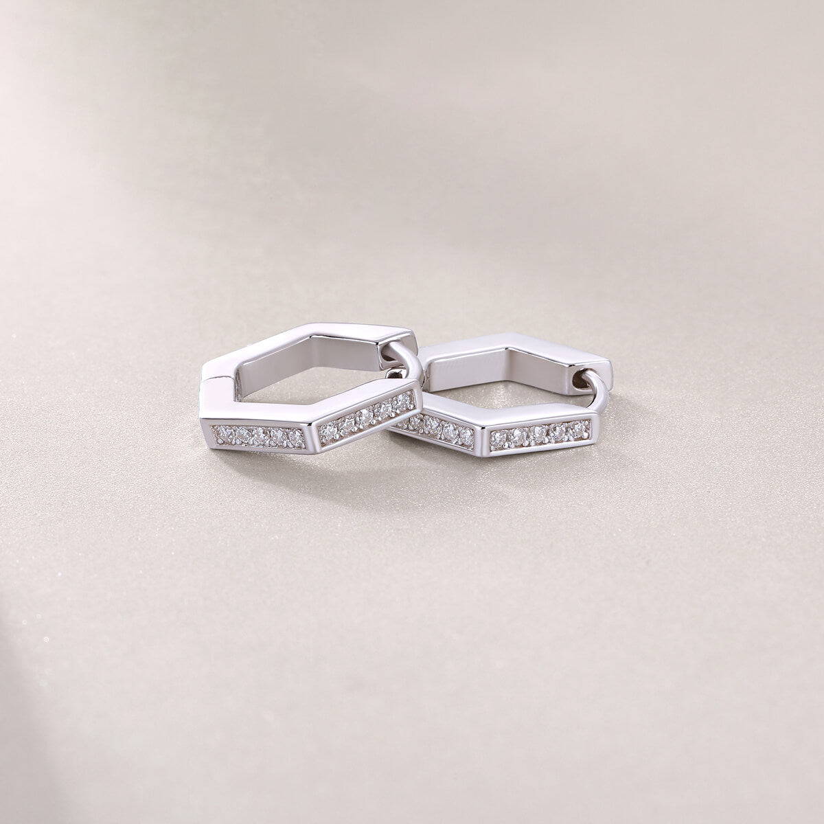These full-pave pentagon earrings radiate brilliance and elegance, symbolizing glamour and modernity. Perfect for parties, office wear, or casual outings. A luxurious gift for anniversaries or friends. Pair with a sequin dress or neutral blazer, and match with diamond-studded bracelets for a dazzling finish.