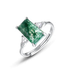 Modern Statement Rectangle Moss Agate Ring in Sterling Silver