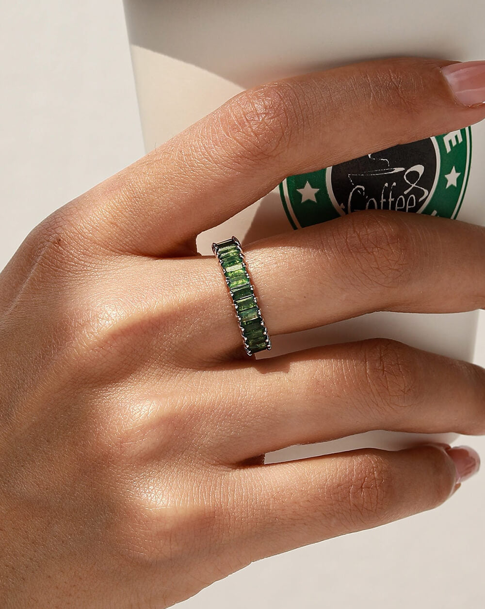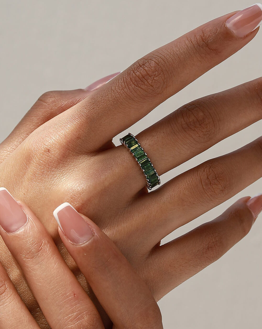 Natural Baguette Emerald Terrace Moss Agate Ring