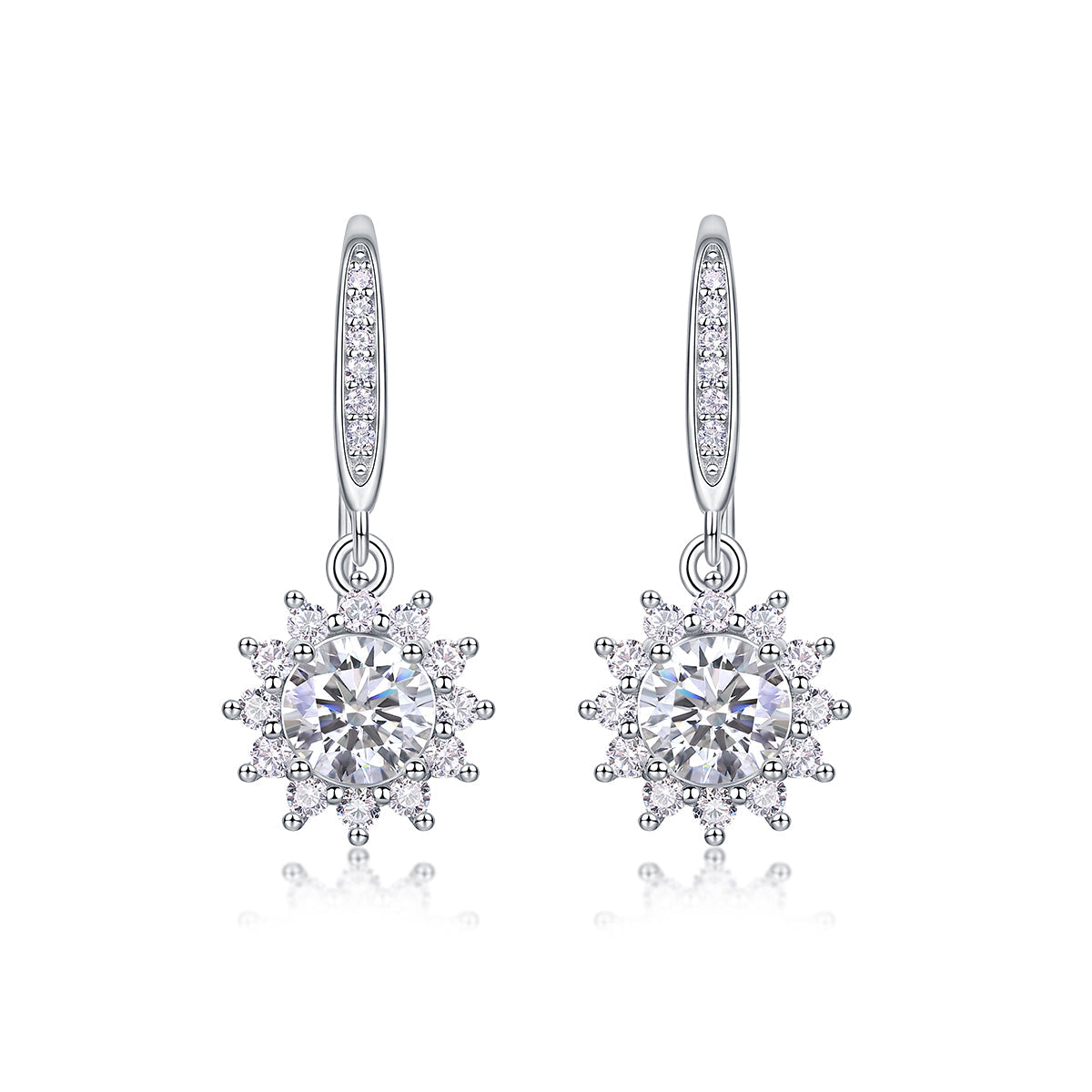 Inspired by the beauty of snowflakes, these drop earrings feature a brilliant central stone surrounded by sparkling accents, symbolizing purity and elegance. Perfect for parties, weddings, or daily wear. An ideal gift for loved ones. Pair with a silver necklace and an ivory dress for a timeless, graceful look.