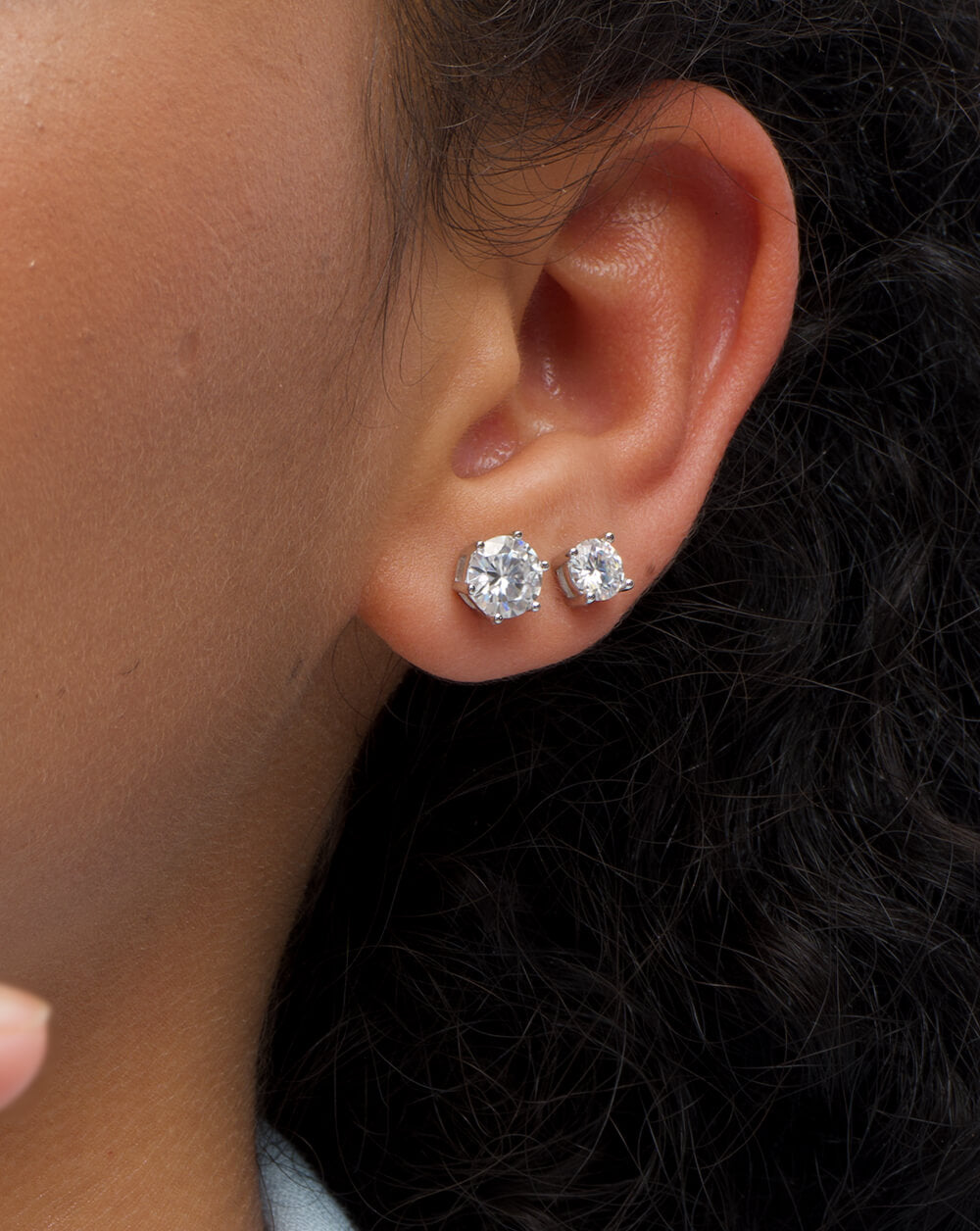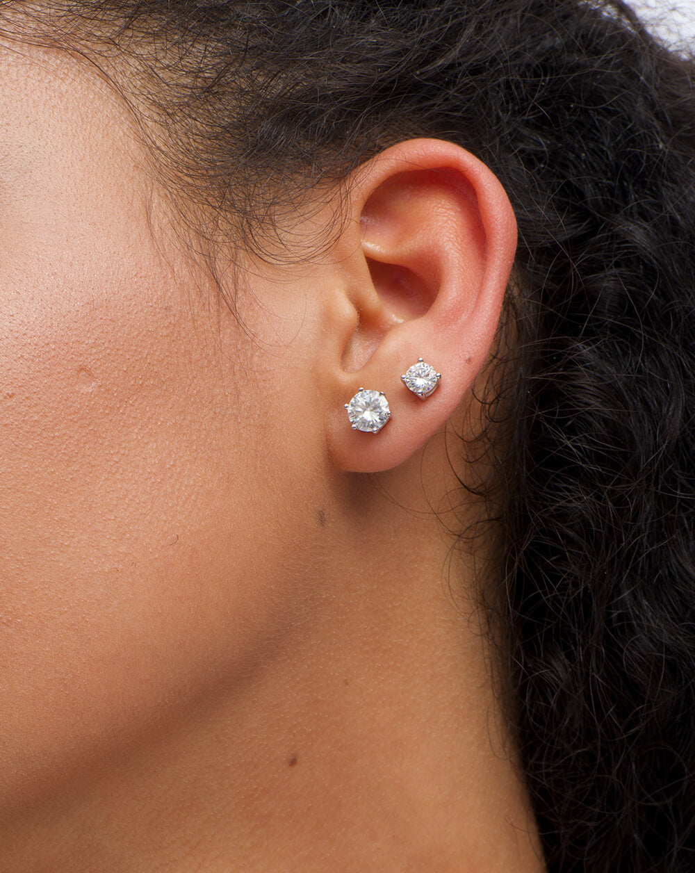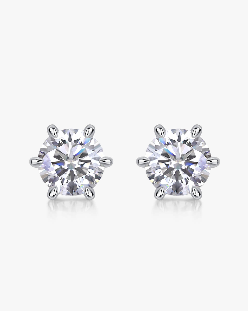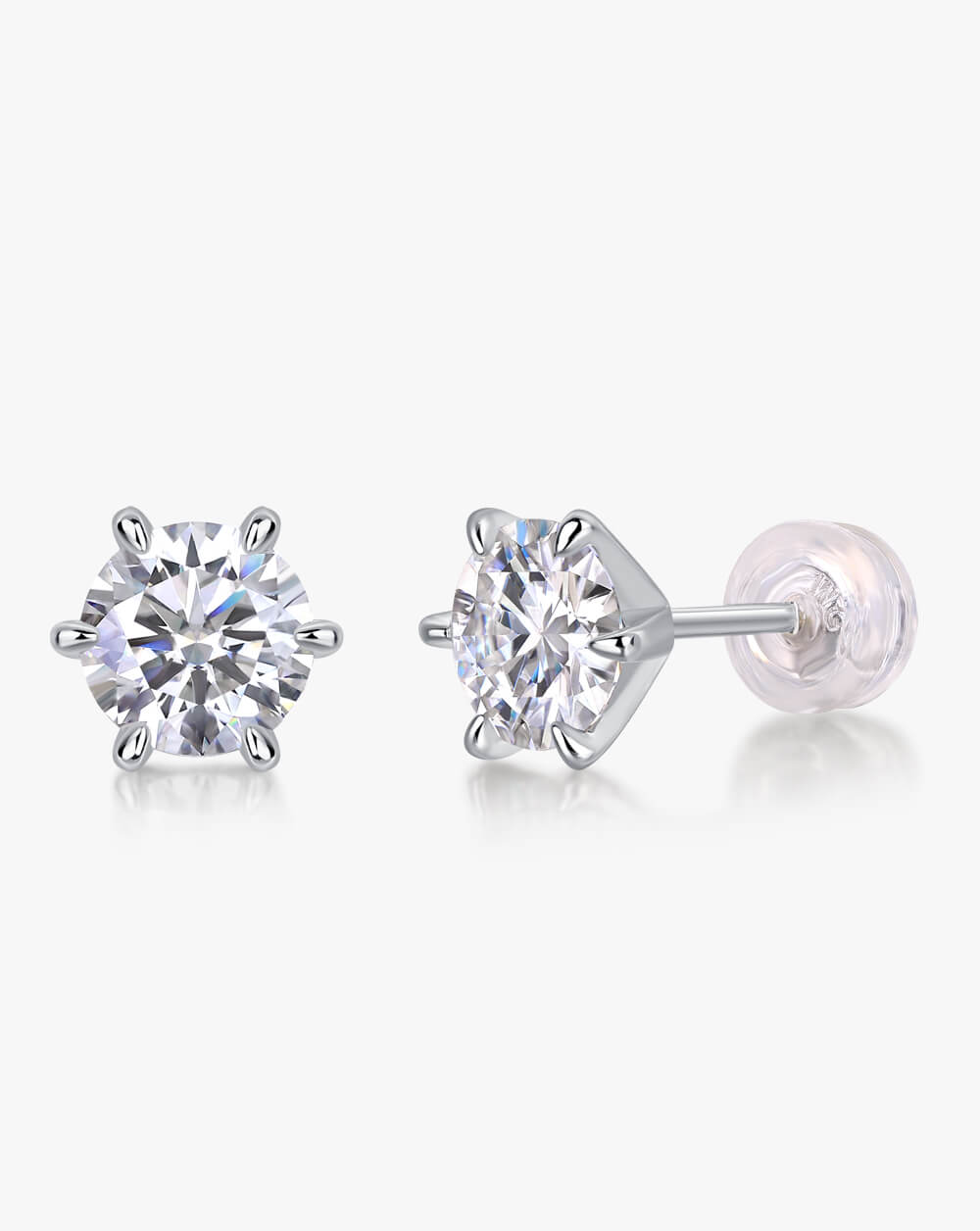 Round 6 Claw Sparkle Silver Moissanite Solitaire Stud Earrings-Unisex