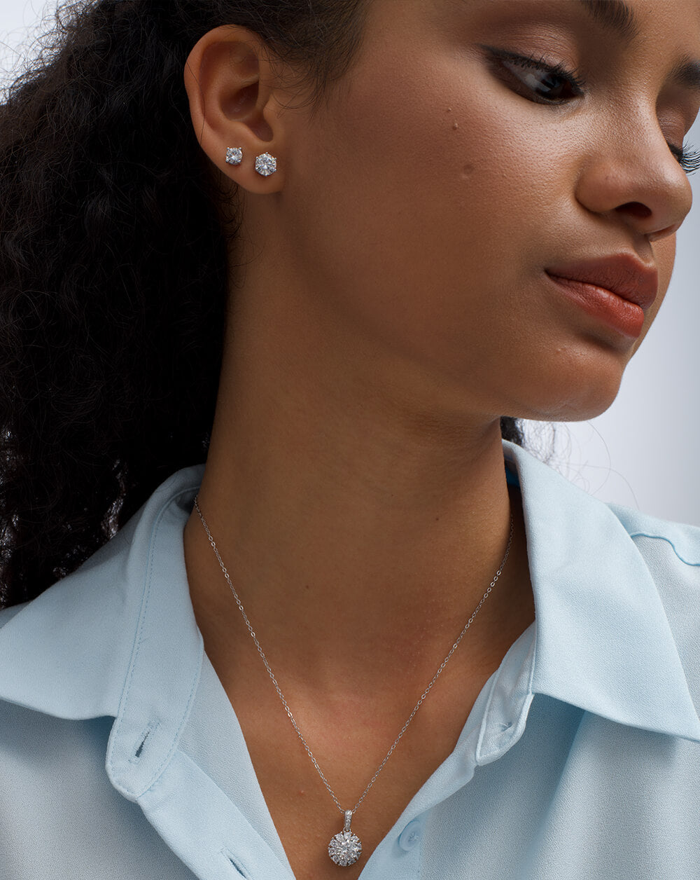Elevate your style with this timeless moissanite earrings, featuring a brilliant round-cut stone in a classic six-prong setting. Perfect for engagements, weddings, or daily wear, this eco-friendly alternative to diamonds pairs beautifully with moissanite stud earrings or a gold bracelet. Add sparkle to any outfit effortlessly with this sustainable, elegant choice.