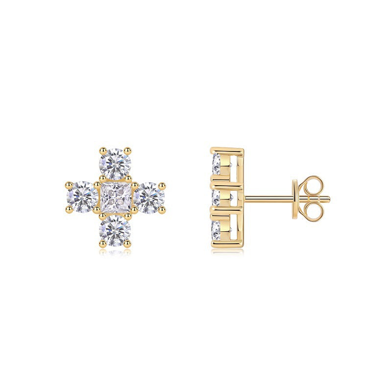 These exquisite cross-shaped earrings feature four sparkling diamonds, symbolizing faith, strength, and balance. Perfect for any occasion—whether it's a formal party, casual outing, or daily wear. Ideal as a gift for loved ones, friends, or a special treat for yourself. Pair them with a sleek black dress or white blouse, and match with silver or gold bracelets to complete your elegant look. A timeless addition to any jewelry collection.