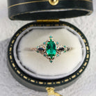 Unique Briar Moon Three Stone Marquise Lab Emerald Ring