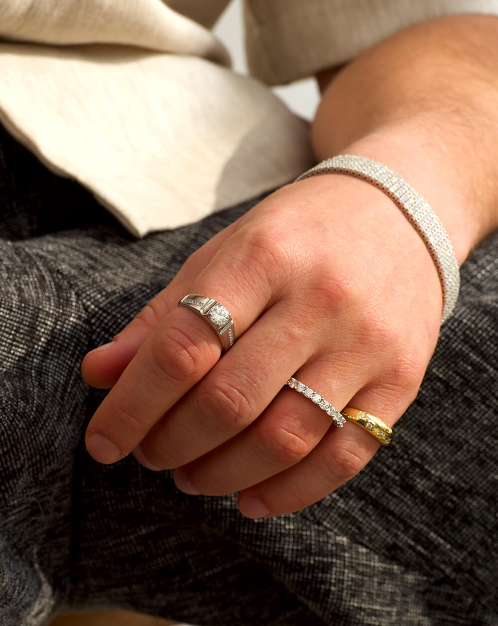 Pave Moissanite Dome Silver Moissanite Ring-Unisex