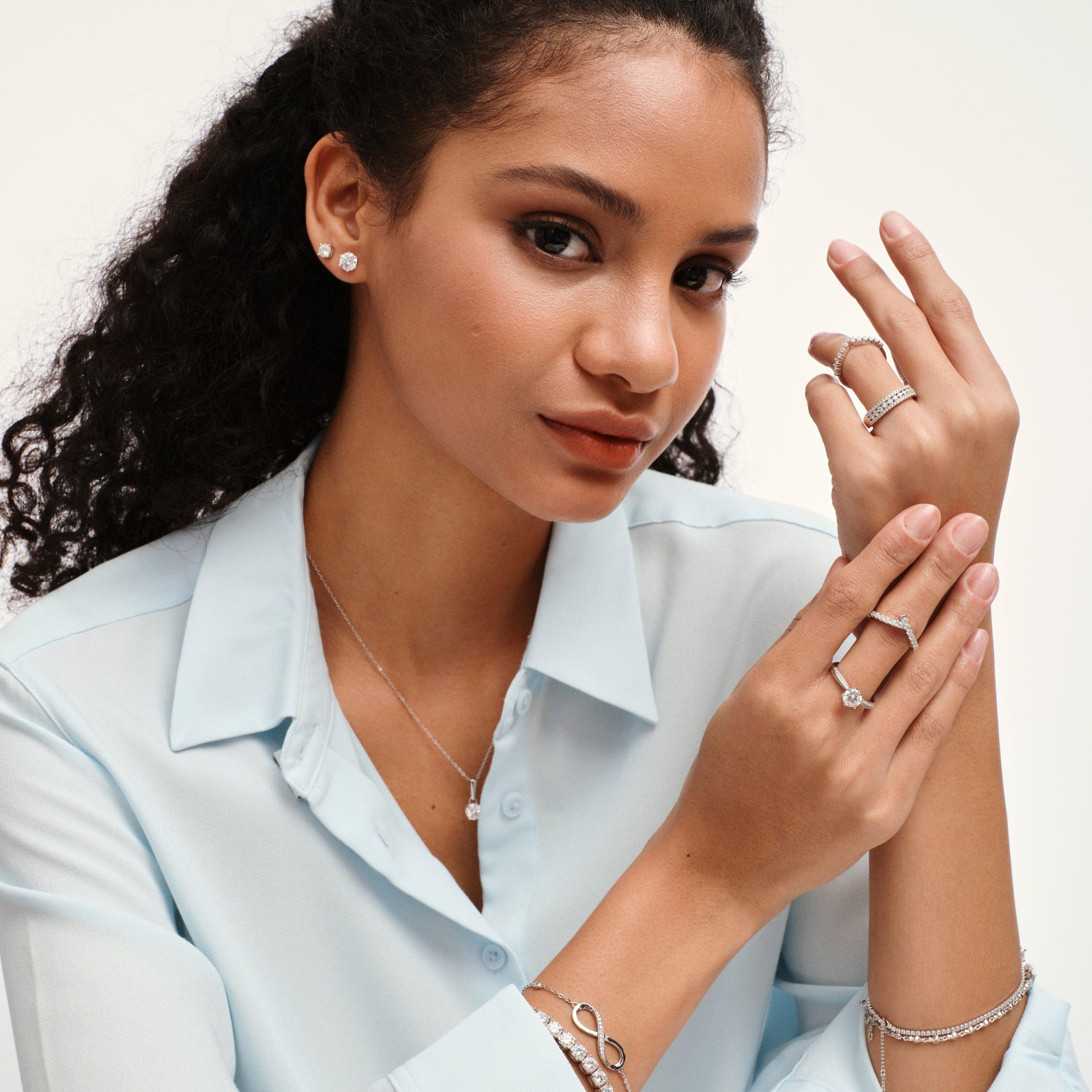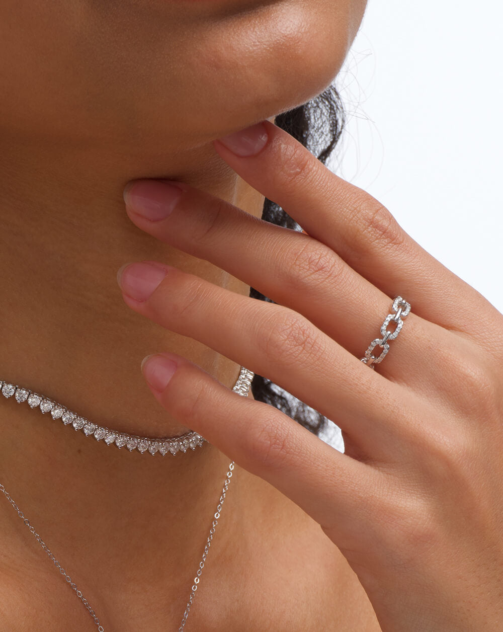 Dazzling Chain-Link Eternity Silver Moissanite Ring