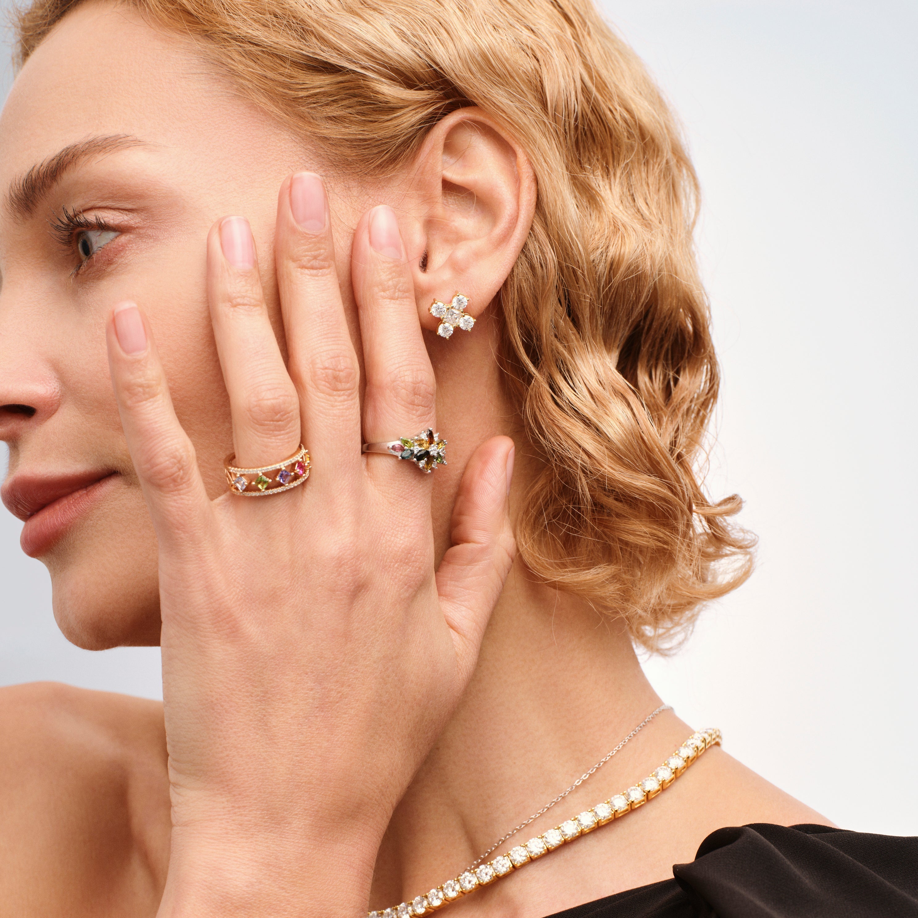 Criss Cross X-Shaped Half Eternity Stacking Ring