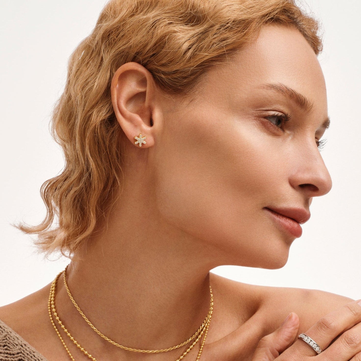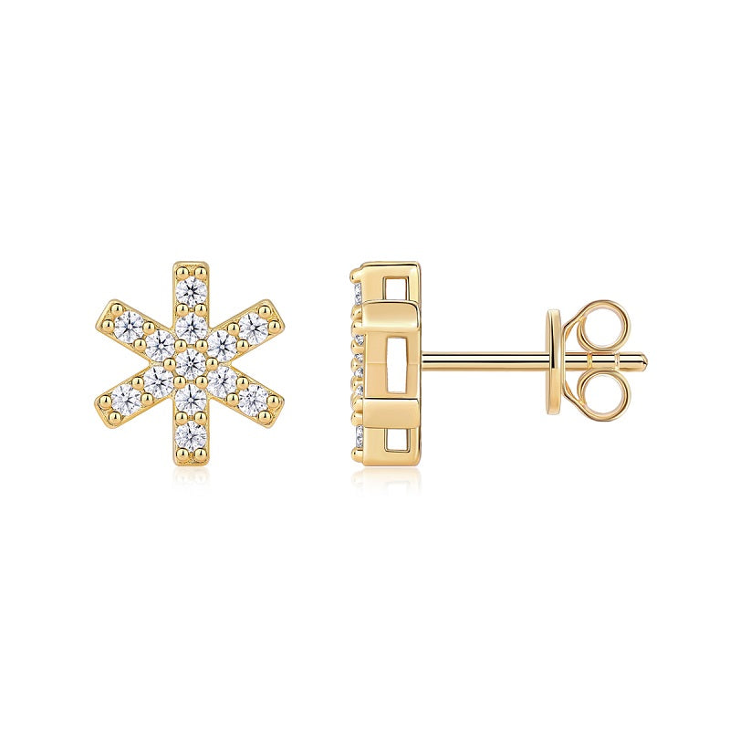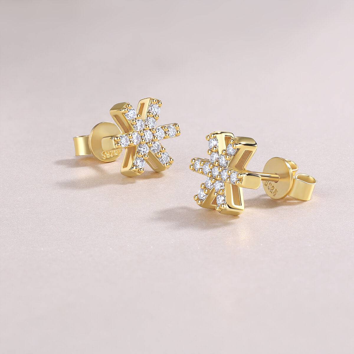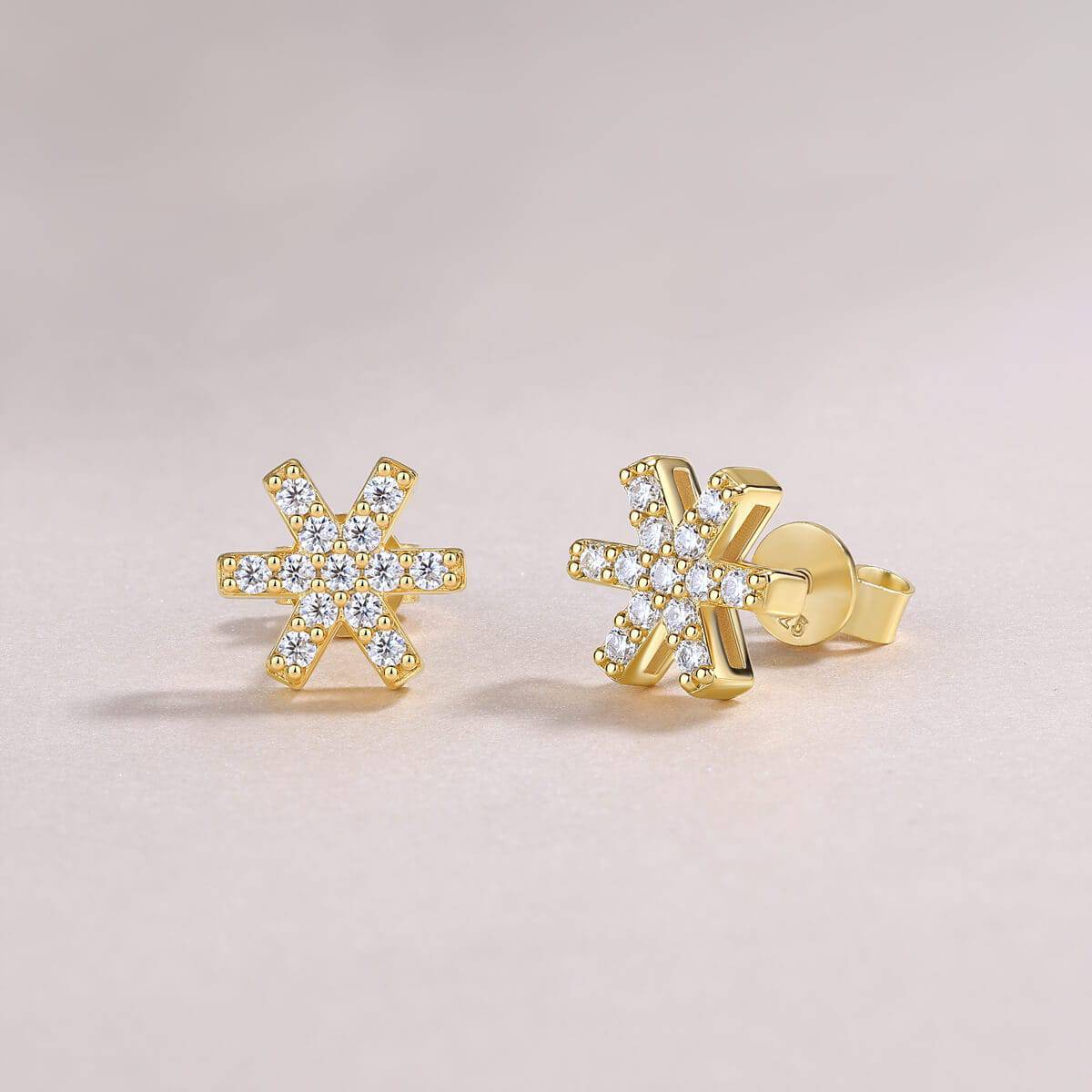 Radiant Snowflake Gold Stud Earrings-Unisex