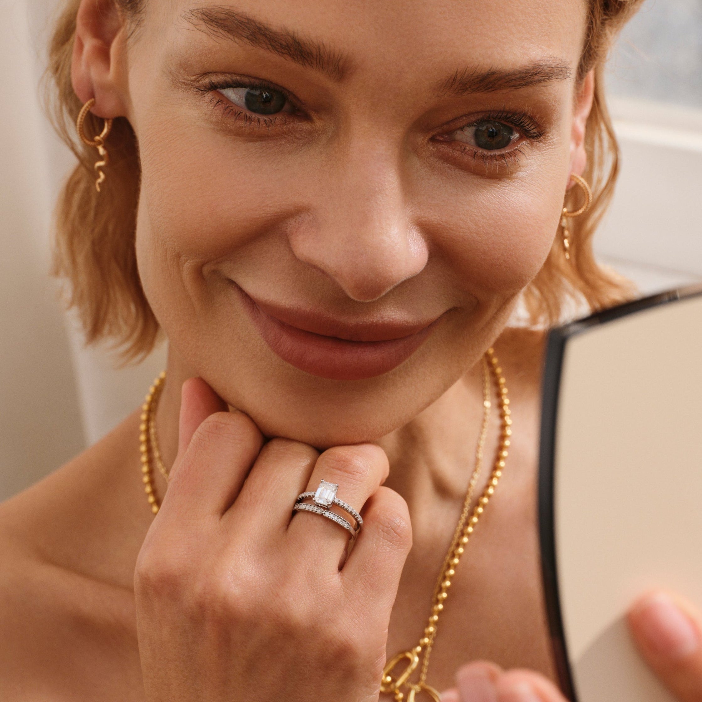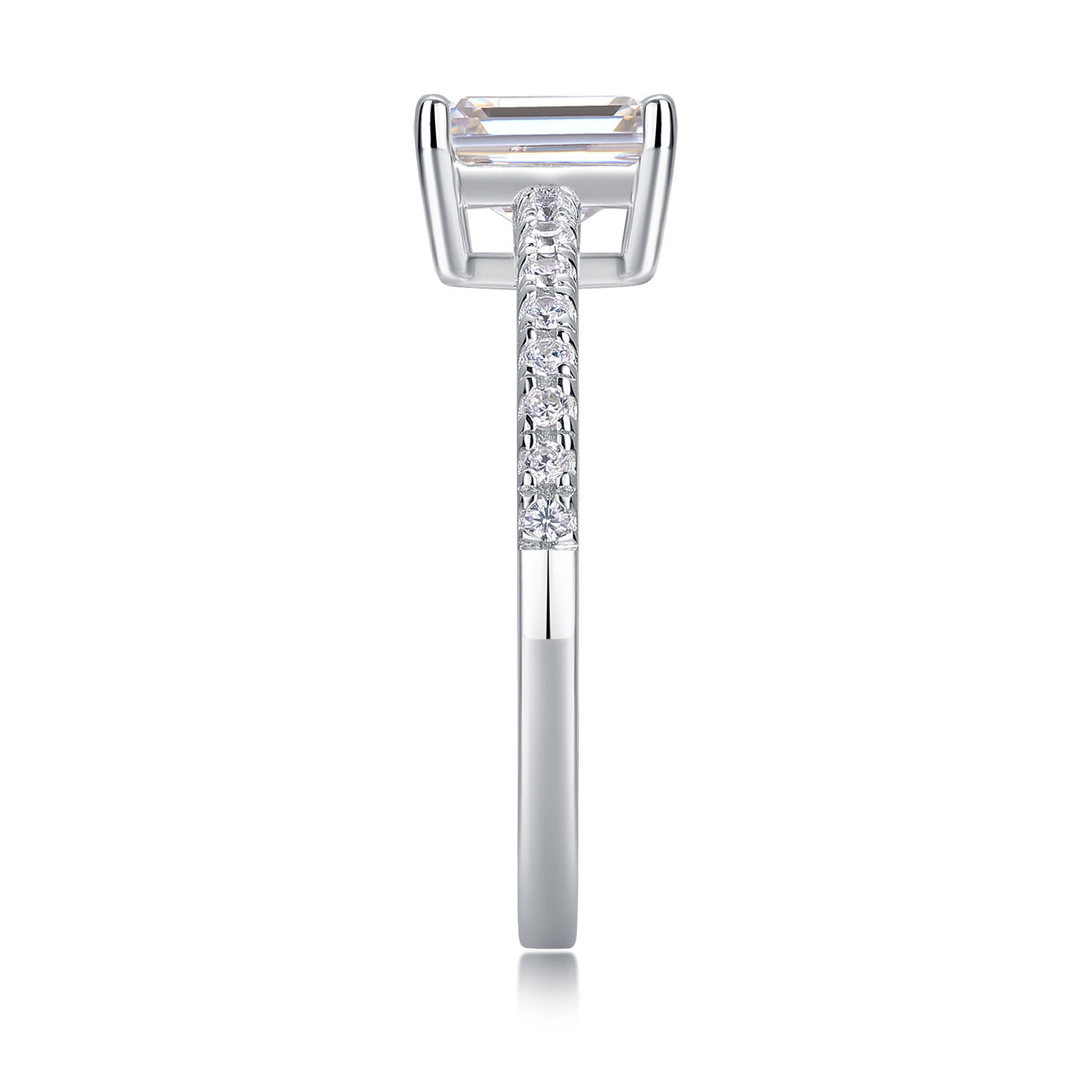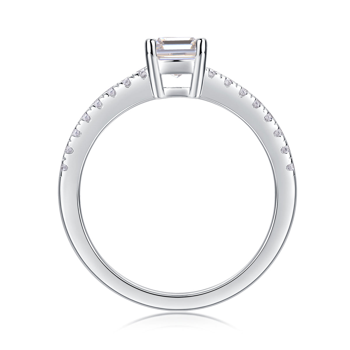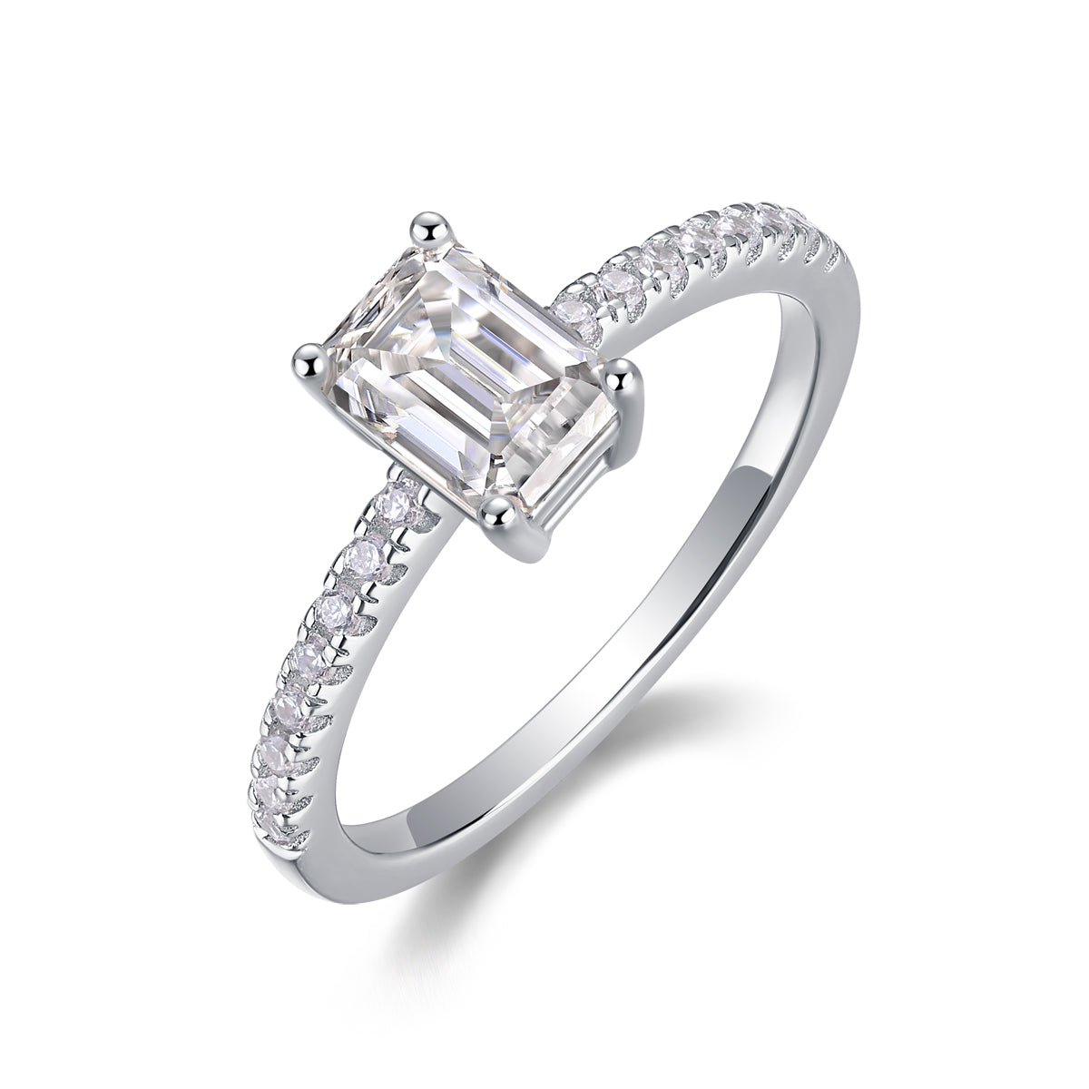 Radiant Emerald-Cut Silver Moissanite Solitaire Ring