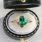 Unique Aurora Three Stone Marquise Lab Emerald Ring