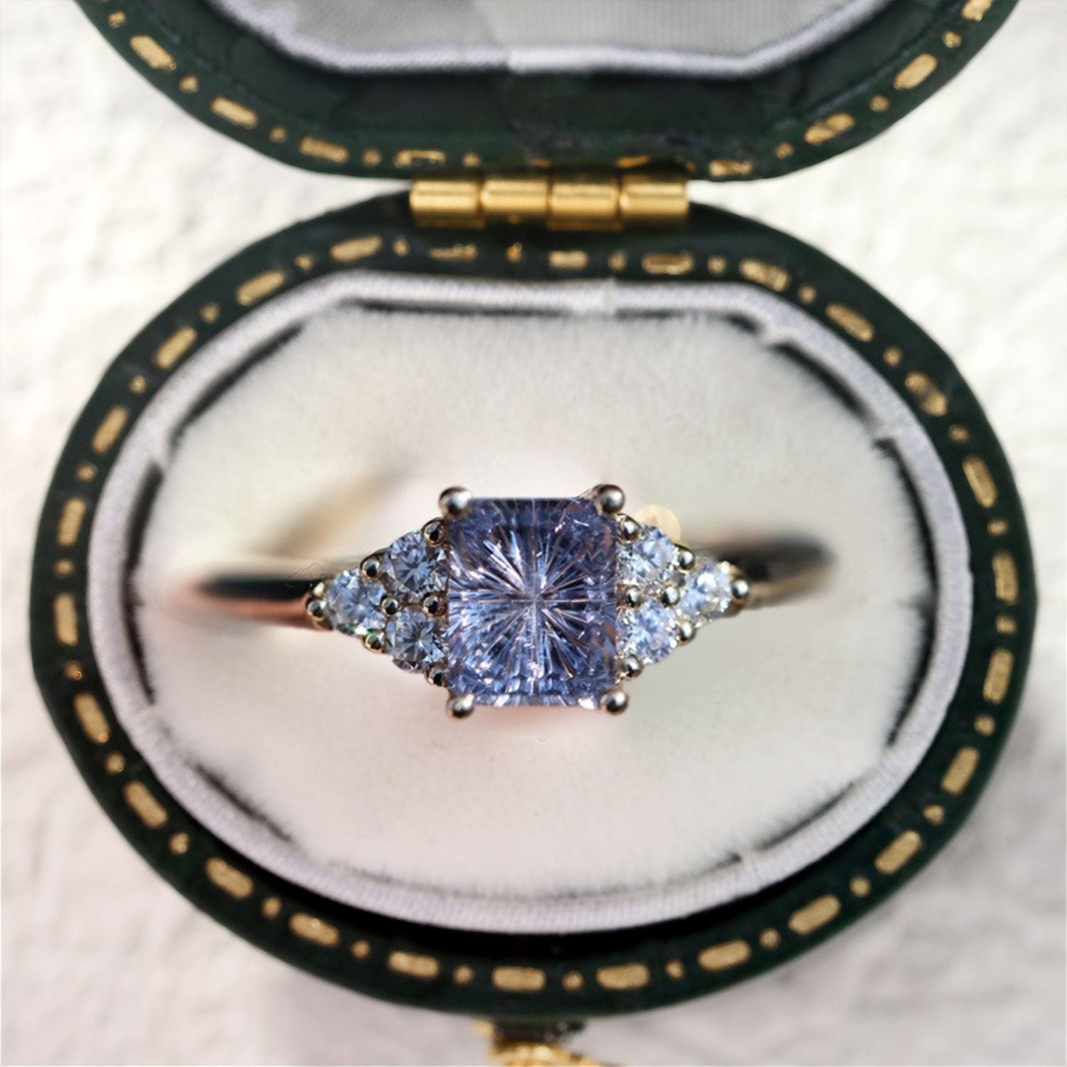 Unique Modern Cluster Emerald cut Purple Lab Sapphire Ring