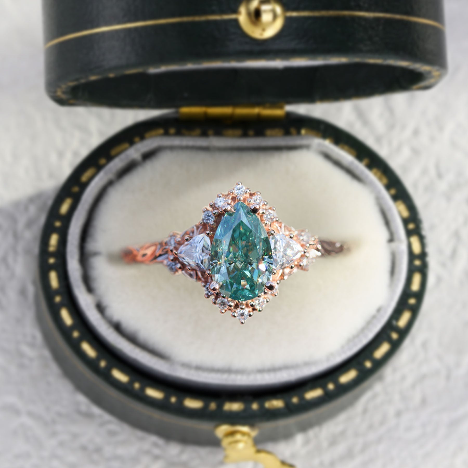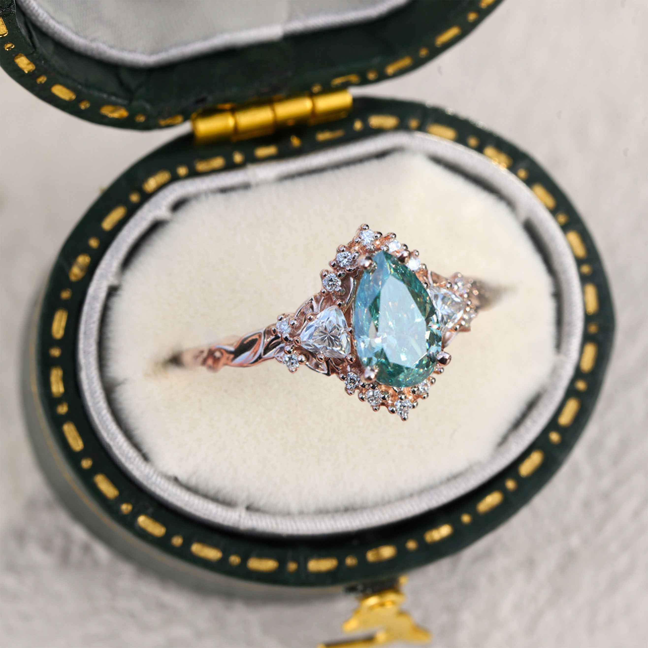 Unique Briar Half Halo Pear Teal Moissanite Ring