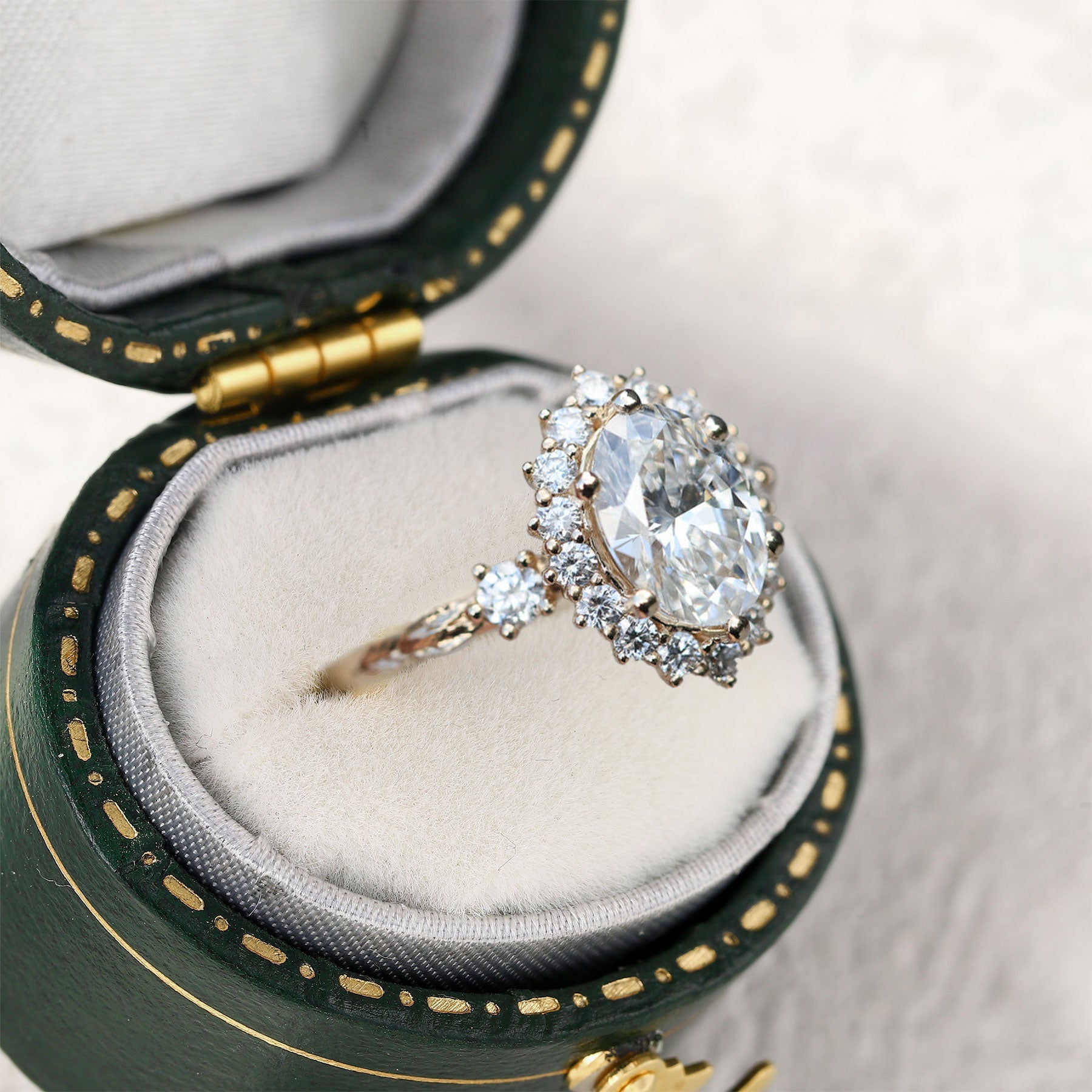 Unique Briar Rose Halo Oval Oval Moissanite Ring