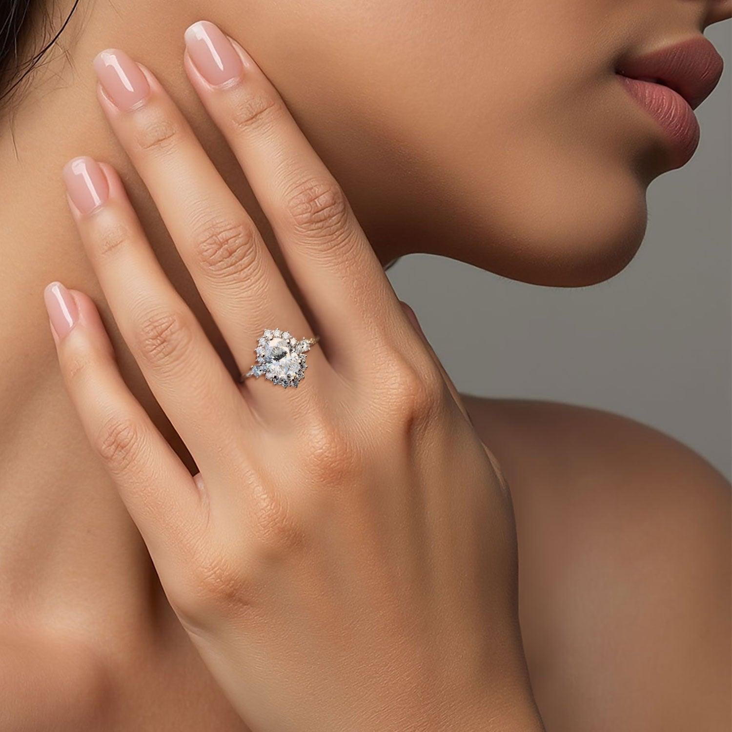 Unique floral engagement rings Moon three stone Half Halo Marquise Moissanite Ring