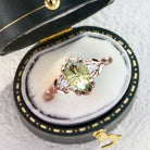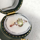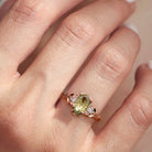 Unique Three Stone Starbrite Cut Oval Green Lab Sapphire Leafy Ring