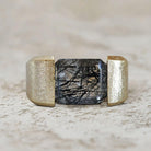Unique Robo Emerald Lab Black Rutilated Quartz Ring Band For Men