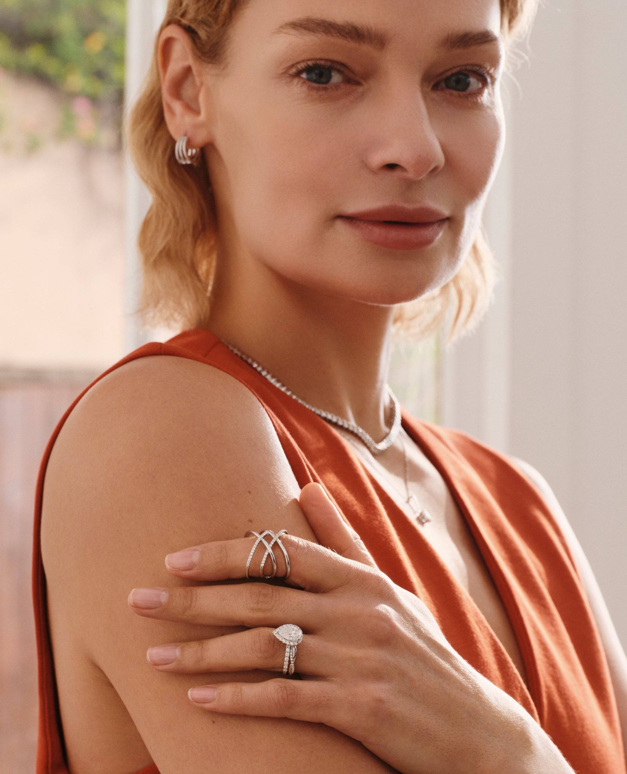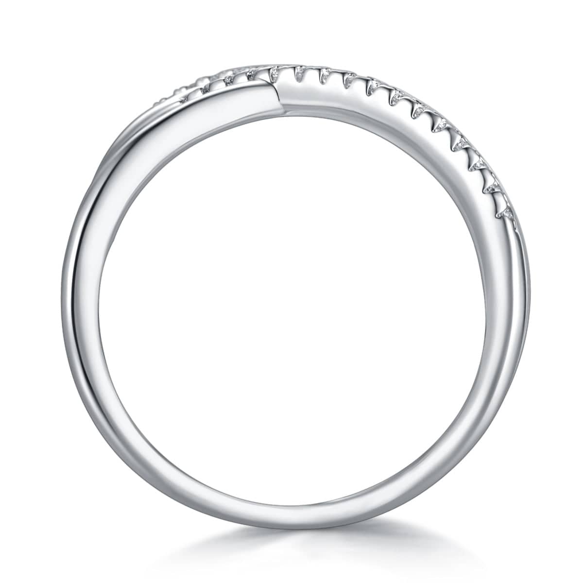 Criss Cross X-Shaped Half Eternity Stacking Ring In Silver Moissanite