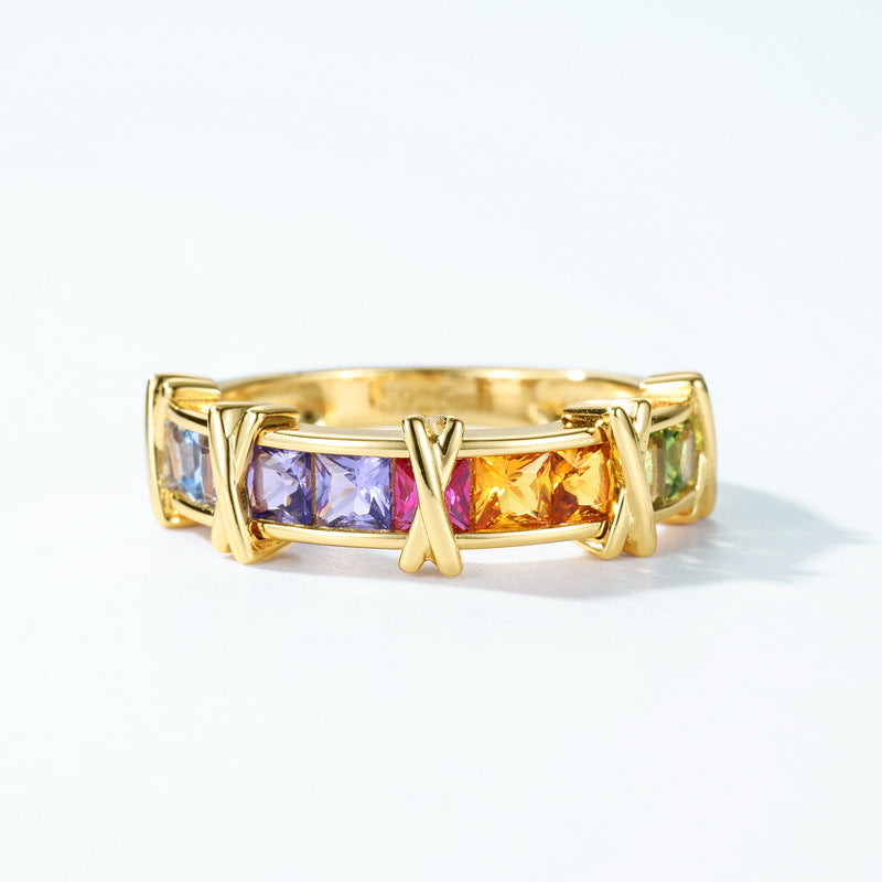 Rainbow Gold Criss Cross Baguette-Cut Ring